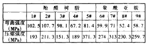 按照壓制金剛石軟磨片的配方(不加金剛石)配料,壓制成的測試樣經(jīng)過后處理,測出抗壓、抗彎強度,結果見表1。
