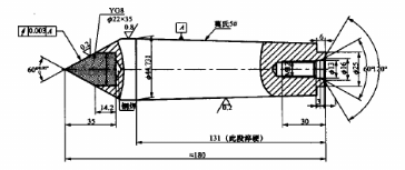 硬質(zhì)合金頂尖由于其耐磨性好,使用壽命長等優(yōu)點在各類機床及測量儀器中大量運用。我公司以往硬質(zhì)合金頂尖(如圖 )60°錐面部分材料為YG8,在外圓磨床磨削是將莫氏5號錐柄插入頭架主軸莫氏5號錐孔,頭架轉(zhuǎn)角度,采用綠色碳化硅干磨片磨削,無論粗磨還是精磨,都或多或少出現(xiàn)硬質(zhì)合金部分產(chǎn)生裂紋而造成報廢,尤其是硬質(zhì)合金部分較大時裂紋極易產(chǎn)生,另外由于綠色碳化硅在磨削中干磨片輪廓保持性差,60°錐面與環(huán)規(guī)接觸90%達不到要求,表面粗糙度也很難改善。